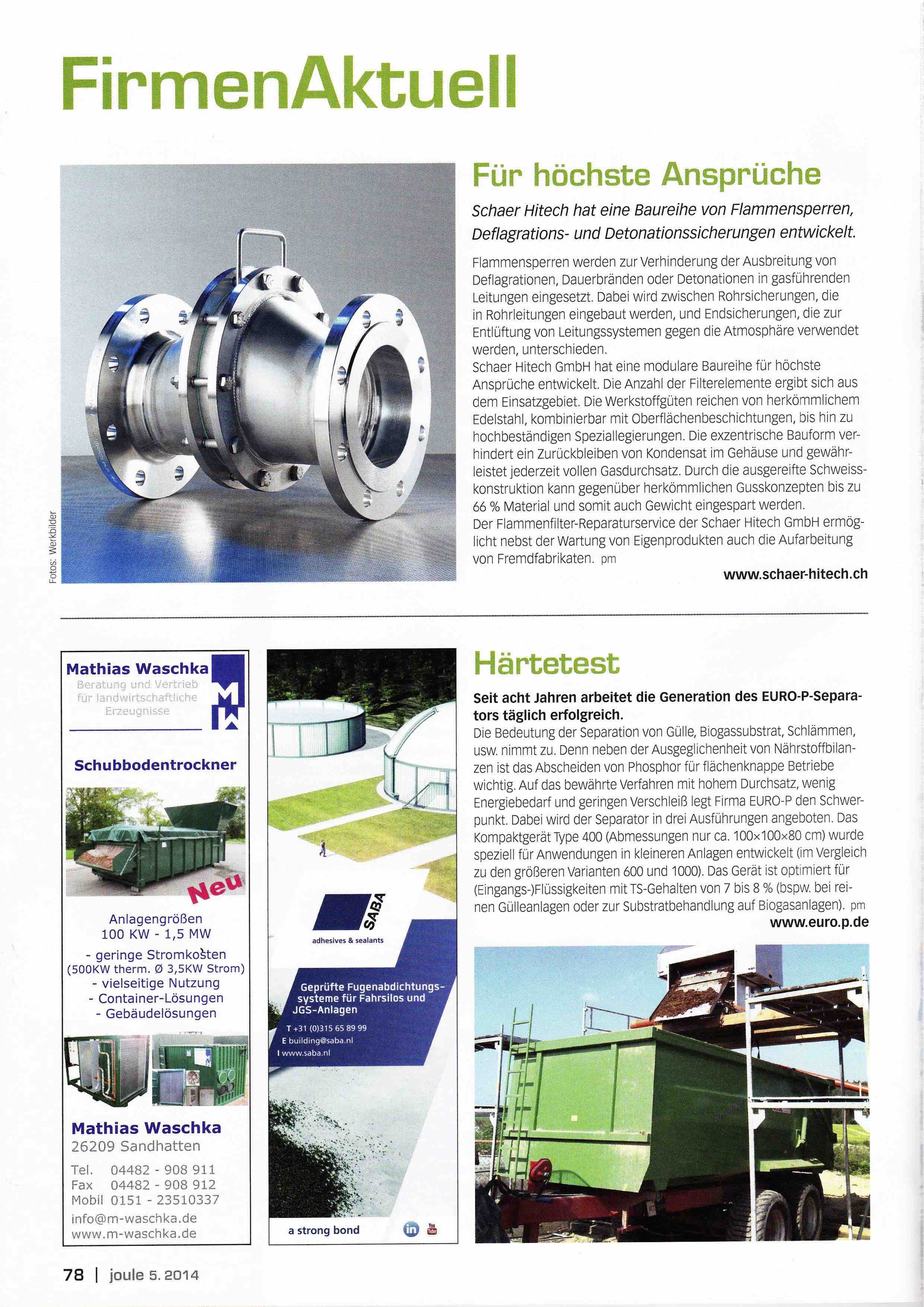 Die deutsche Energiefachzeitschrift “Joule” hat in der Rubrik “FirmenAktuell” freundlicherweise unsere Pressemitteilung abgedruckt. http://www.joule-online.de